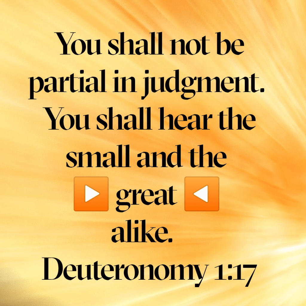 UncategorizedDeuteronomy 1:17 November 23, 2021November 23, 2021 Eric Gagnon Interesting that the “small” don’t get special treatment. We also hear the case of the “great” without partially. Share this: Click to share on X (Opens in new window) X Click to share on Facebook (Opens in new window) Facebook Like Loading... Related